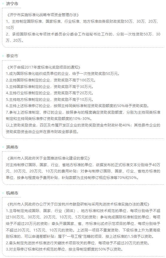 团体标准纳入各地财政补贴范围(地市篇)